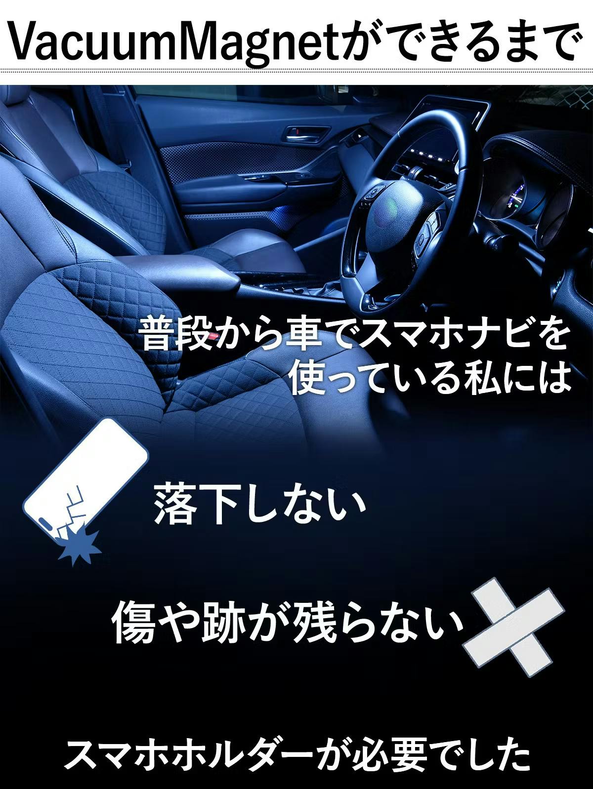 その想いであらゆる設置方法を探求、研究した結果辿り着いたのが「自動吸着する真空ホルダー」でした。