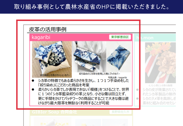 2025年3月には農林水産省HP内にある「ジビエ利活⽤の取組事例」の紹介ページにも掲載いただくことになりました。