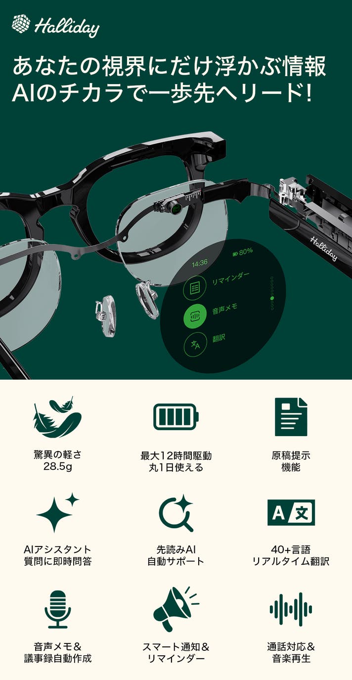 世界的人気クラウドファンディングプラットフォーム「INDIEGOGO」にて、AI/ARスマートグラス支援額第1位に輝き、総額5.9億円の資金調達を達成※。100カ国以上で熱狂的な支持を得たAIグラス「Halliday」が、その革命的な体験を携えて、ついに日本に上陸!