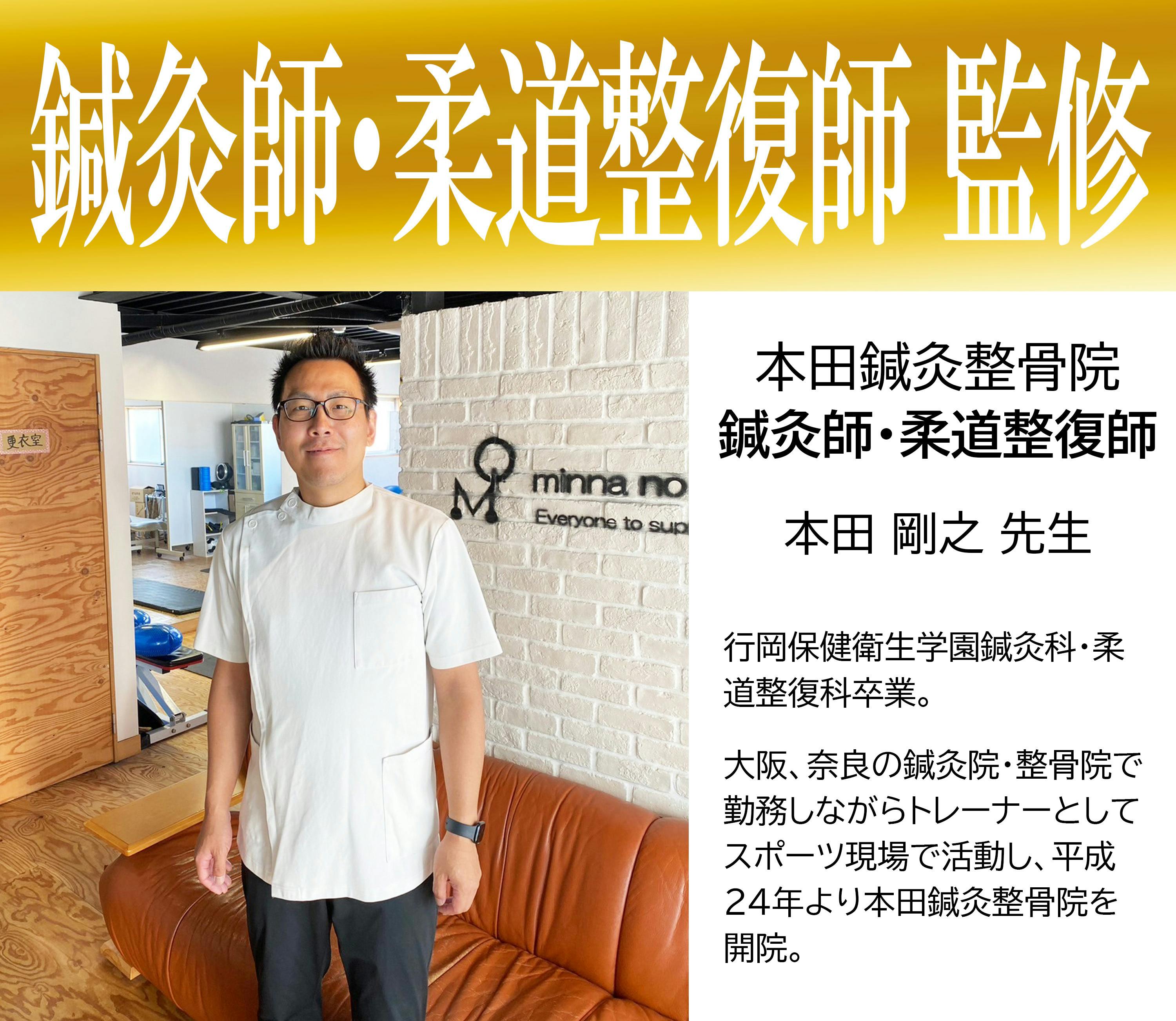 そこで、柔道整復師・本田先生と一緒に企画したのが、この「盛山治太朗」です。