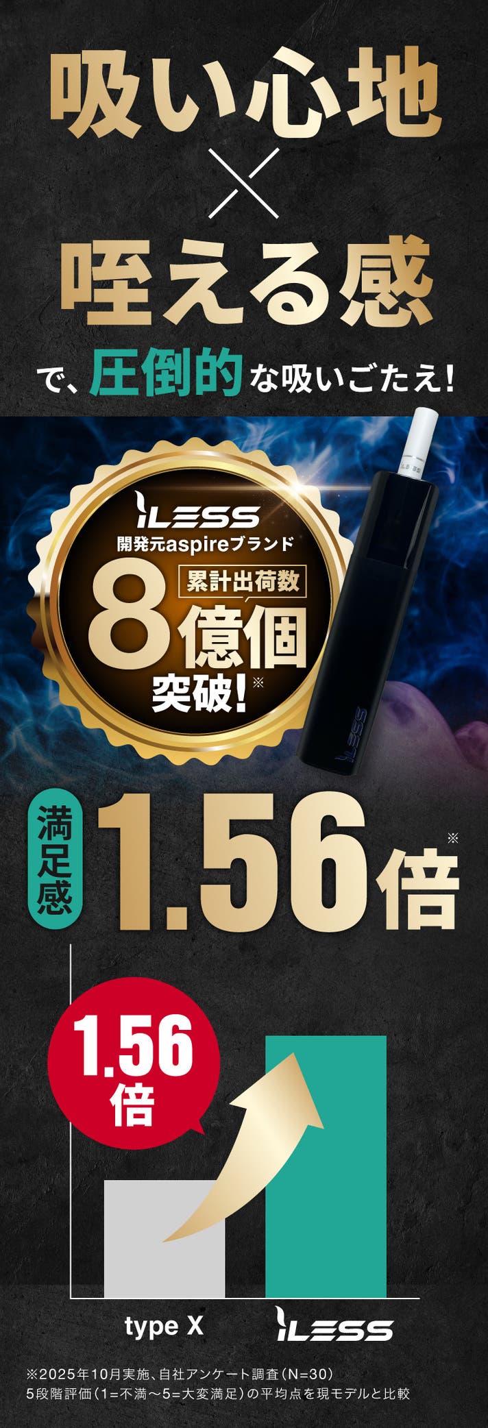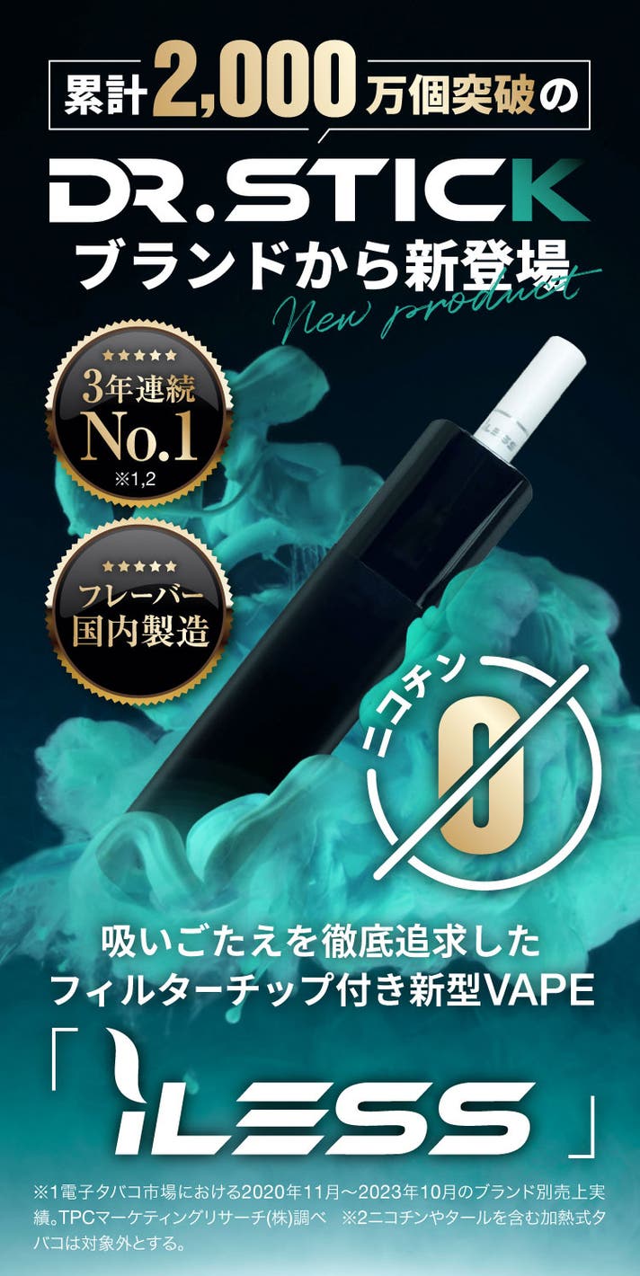 iLESS|【紙巻の口当たり】吸いごたえ成分シガノン配合の新感覚VAPE ライフスタイル・ホビー 話題 Makuake X Facebook はてブ LINEこのクラウドファンディング終了まで、あと31日ですフィルターチップを装着するため、紙・加熱式タバコに近い感覚!リアルな味わいと吸いごたえを両立! 現行の「Dr.Stick typeX」と比較して使用感満足度は1.56倍!その理由は…!? 脅威のコストパフォーマンス!1日1箱タバコを吸う方なら年間3万円の節約※も可能に!? https://www.makuake.com/project/iless/関連のクラウドファンディング 『趣味で繋がる』出会い企画『男塾交流会』をプロデュースしたい! レールキューブ|新感覚パズルブロックに大人も子供も夢中!STEAM教材にも 水戸で私設図書館&シェアリビング「migiwa」をつくりたい! 【前回1億超え】更に便利に楽しくを追求!ミラーリング可能なディスプレイ|第二弾 【吉祥寺駅徒歩2分】100人入れるモンスターサウナMakuake限定チケット販売 印刷・カット・ラミネートまで全自動|Lieneフォトステッカープリンター 金沢で生まれた「優勝」が東京・虎ノ門へ。北陸の海の恵みをより多くの方へ届けたい。 日常に、見えない知性を。次世代型AIグラス「Halliday」 X Facebook はてブ LINE