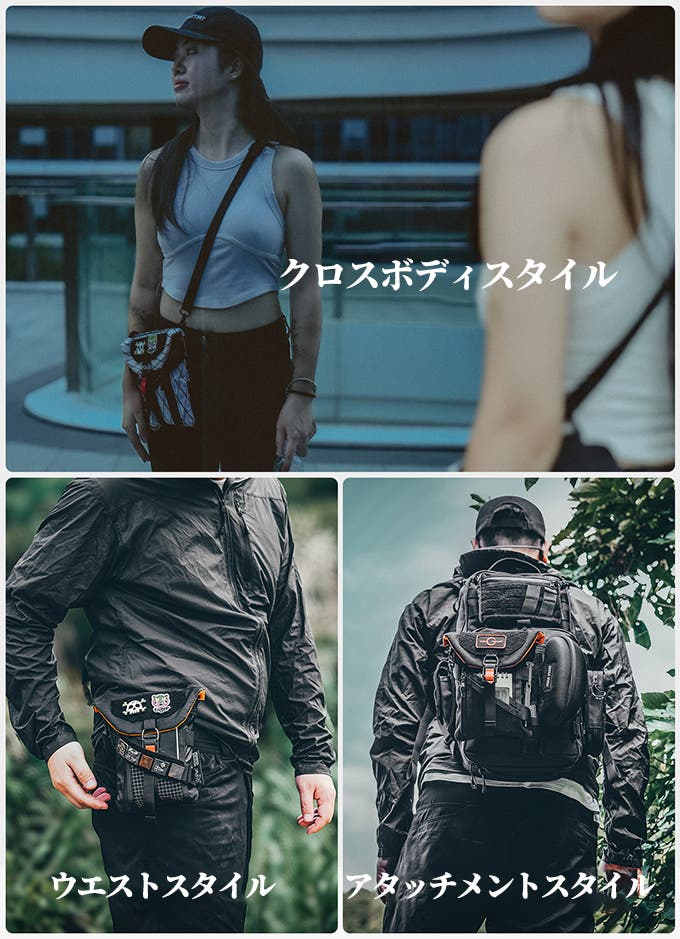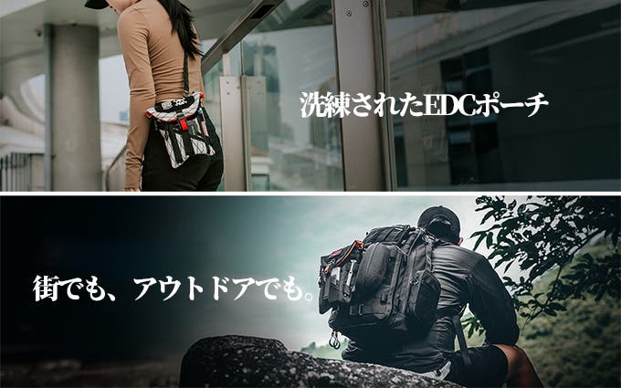スタイリッシュな日常用クロスボディとして、アウトドア用のアタッチメントポーチとして、またカスタマイズ可能なEDCウエストポーチとしても活躍。
