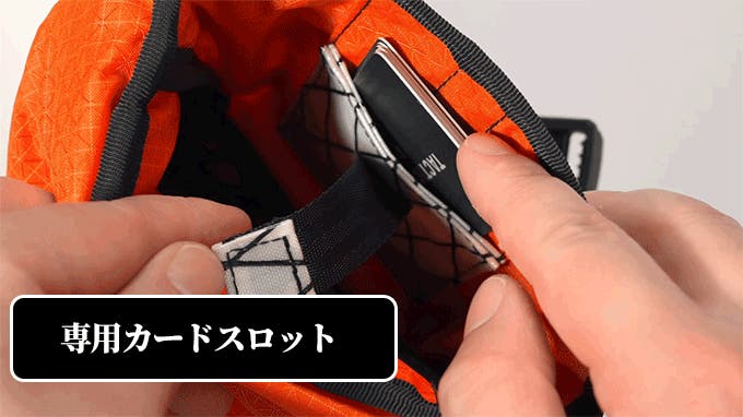 カードポケットにはプルタブを採用。カードを素早く取り出せます。